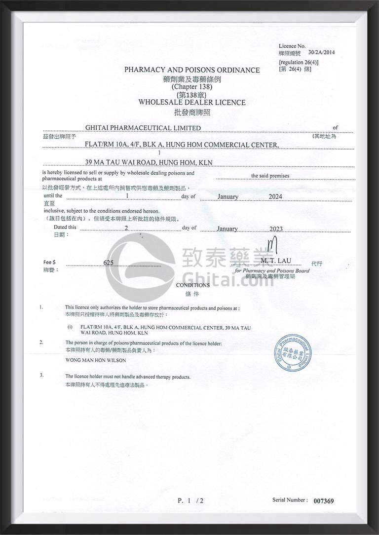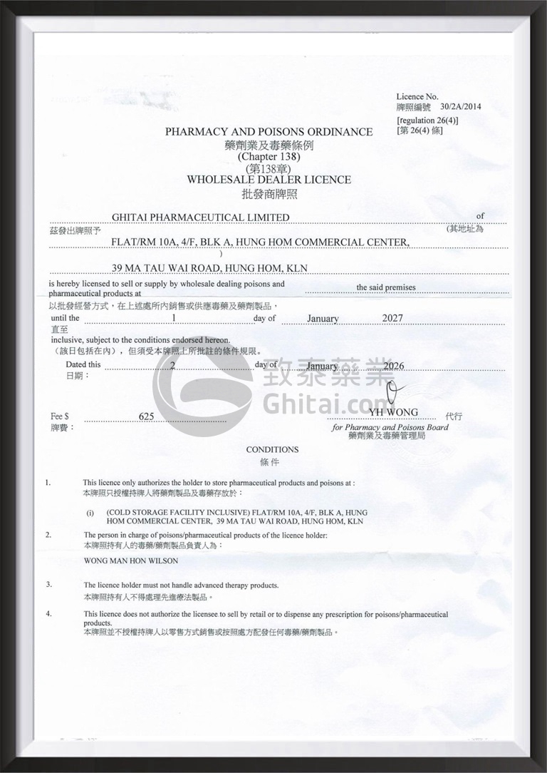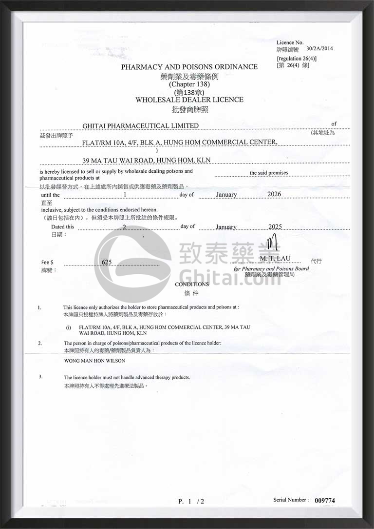 Hong Kong Department of Health Drug Office’s official website, a licensed drug manufacturers caused by the GHITAI Pharmaceutical registration information inquiry screenshot.